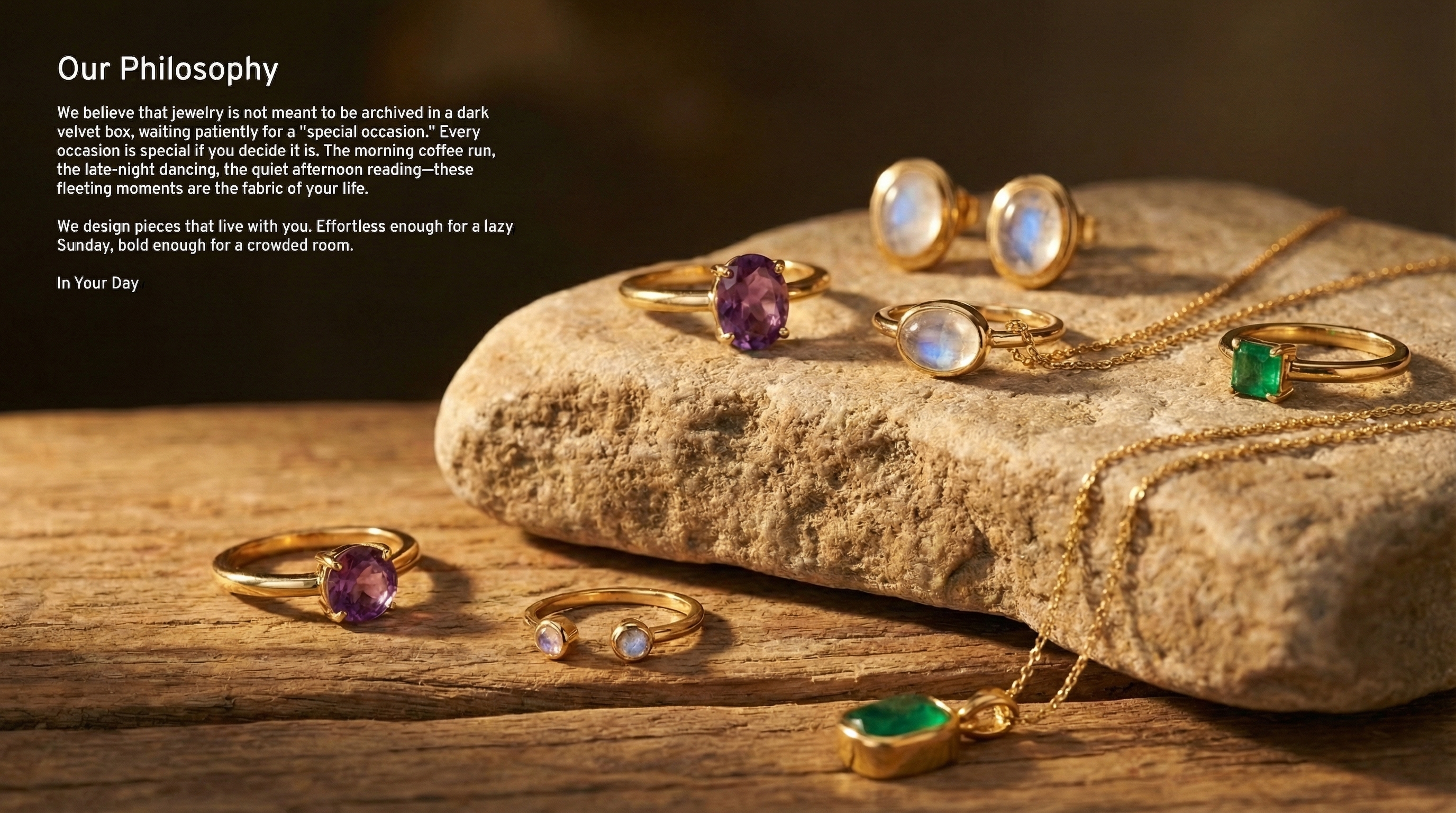 Drawing inspiration from vintage archives, flea market treasures, and the golden hour glow of the '90s. We bring back the warmth of the past and fuse it with modern edge to create modern heirlooms you won't want to take off.